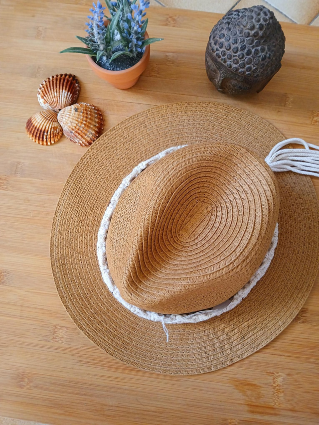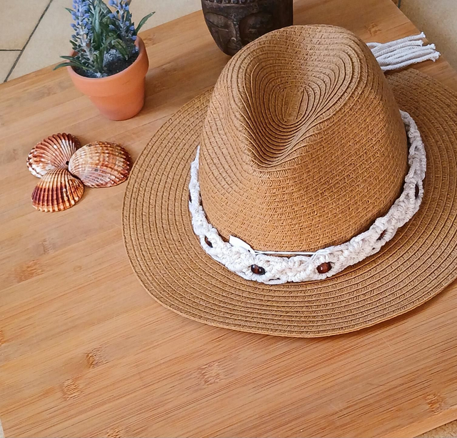 🌿 Chapeau orné d'une jolie tresse en macramé. 🌿 Réalisé avec des cordes en coton recyclé certifié oeko tex. 🌿 Idéal pour look bohème.