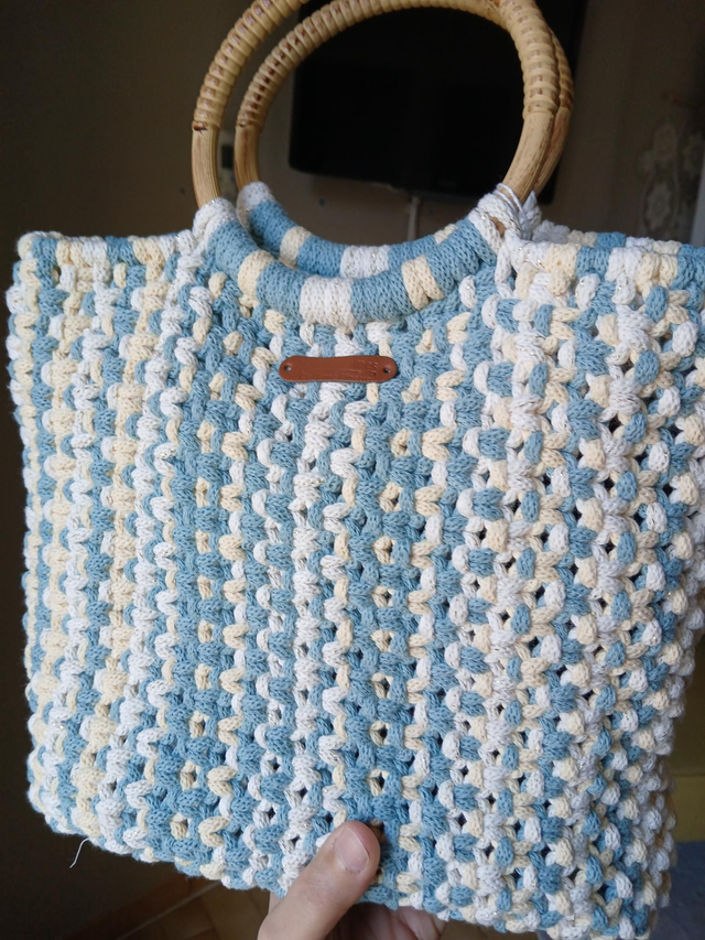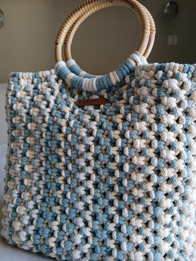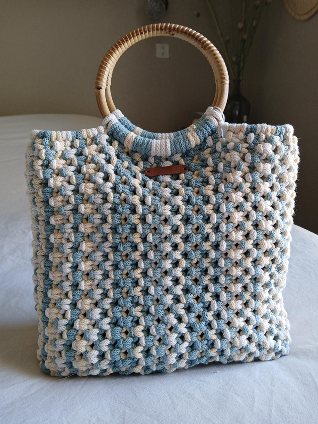 ✨️Le sac Brise Marine est entièrement réalisé à la main en coton recyclé, dans une démarche écoresponsable et engagée. Son tressage généreux mêlant écru et bleu doux rappelle les nuances de l’océan et apporte fraîcheur et élégance à ta tenue.