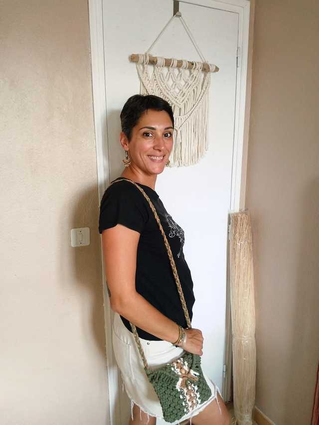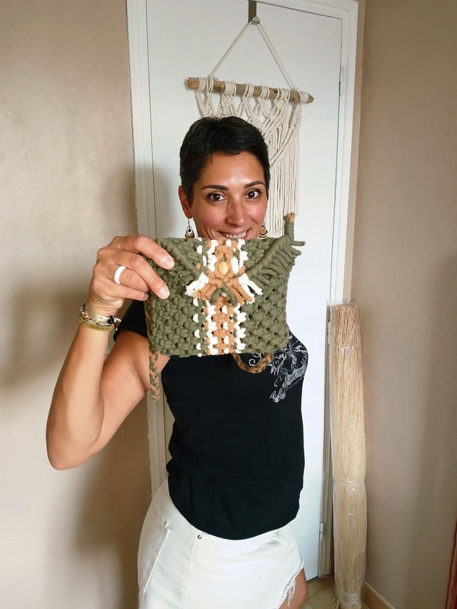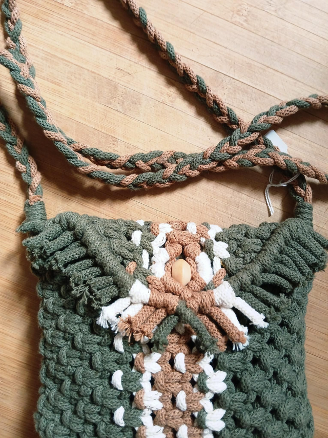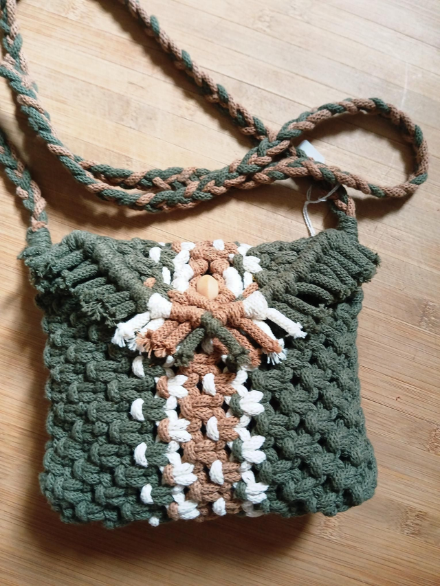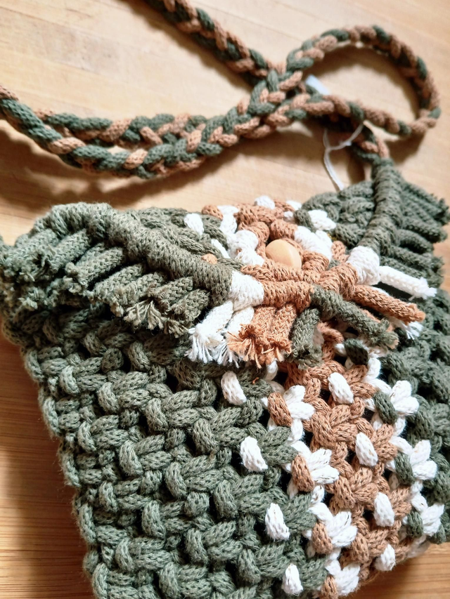 ✨️ Sac en coton recyclé certifié Oeko-Tex, entièrement réalisé à la main. Joli mélange de kaki, marron et crème .